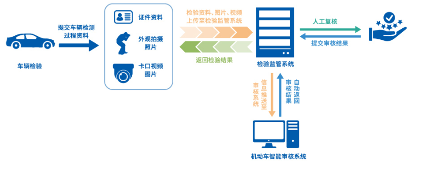 機(jī)動(dòng)車安全技術(shù)檢驗(yàn)業(yè)務(wù)智能審核系統(tǒng)是采用計(jì)算機(jī)深度學(xué)習(xí)算法提取圖片和視頻中特征信息,對(duì)車輛檢驗(yàn)過程的外觀照片、檢測(cè)工位照片、證件單據(jù)圖像上的主要特征和技術(shù)參數(shù)進(jìn)行提取,過規(guī)內(nèi)容對(duì)圖片、文字進(jìn)行解析、記錄、比對(duì),實(shí)現(xiàn)車輛特征查驗(yàn)、車檢過程分析、證件單據(jù)信息審核及異常數(shù)據(jù)預(yù)警功能,提供機(jī)動(dòng)車管理業(yè)務(wù)的智能查驗(yàn)審核服務(wù)。