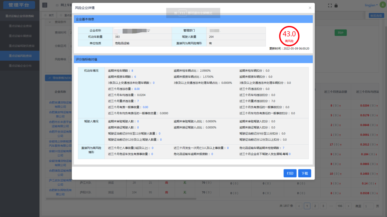 “減量控大”重點(diǎn)運(yùn)輸企業(yè)風(fēng)險(xiǎn)評(píng)估系統(tǒng)