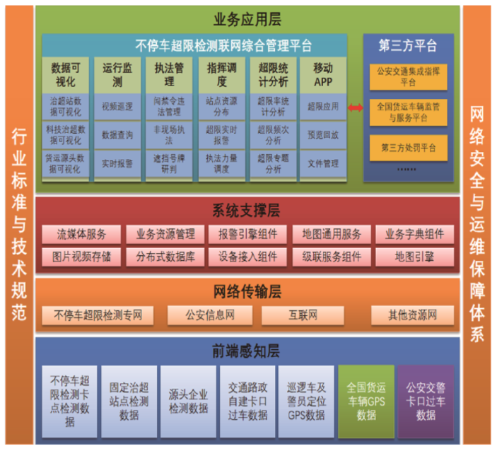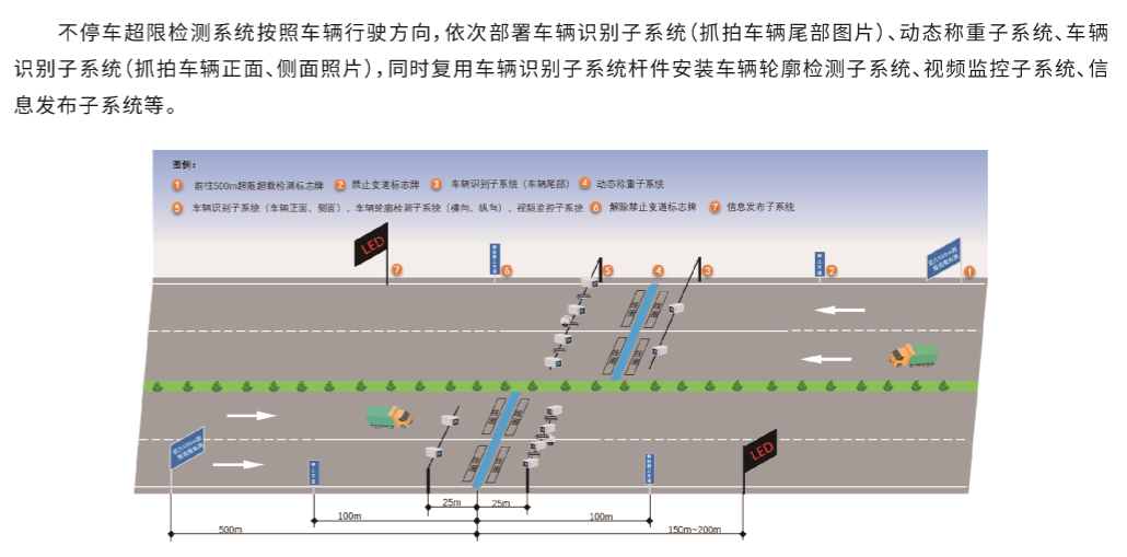不停車超限檢測系統(tǒng)支持貨運車輛車型、軸數(shù)、軸重、車貨總質(zhì)量動態(tài)檢測和輸出,支持貨運車輛輪廓尺寸(長、寬高)動態(tài)檢測和輸出功能,支持貨運車輛車牌識別、視頻錄像、圖像抓拍、異常駕駛行為檢測、判別和輸出,支持貨運車輛超限信息和輪廓尺寸告知、發(fā)布和顯示功能。