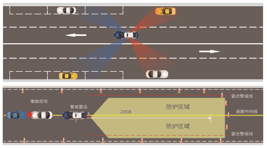 ·安全防護(hù):采用先進(jìn)的車載碰撞預(yù)警雷達(dá)和便攜式區(qū)域警戒雷達(dá),實(shí)現(xiàn)警車和現(xiàn)場(chǎng)全方位防護(hù)