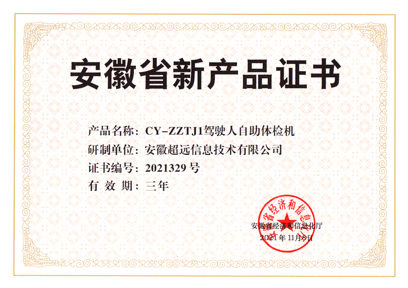 2021年08月22日,由安徽超遠(yuǎn)信息技術(shù)有限公司承擔(dān)的2021年度省級(jí)新產(chǎn)品“CY-ZZTJ1駕駛?cè)俗灾w檢機(jī)”和“CY-RE流量檢測(cè)雷達(dá)”通過(guò)了由安徽省經(jīng)信廳組織專家召開的新產(chǎn)品鑒定會(huì)議,鑒定委員會(huì)聽取了超遠(yuǎn)信息有關(guān)研制工作情況的匯報(bào),查看了研發(fā)生產(chǎn)現(xiàn)場(chǎng)和產(chǎn)品,審查了相關(guān)技術(shù)資料,一致鑒定認(rèn)為,以上兩個(gè)產(chǎn)品均已達(dá)到國(guó)內(nèi)領(lǐng)先水平。