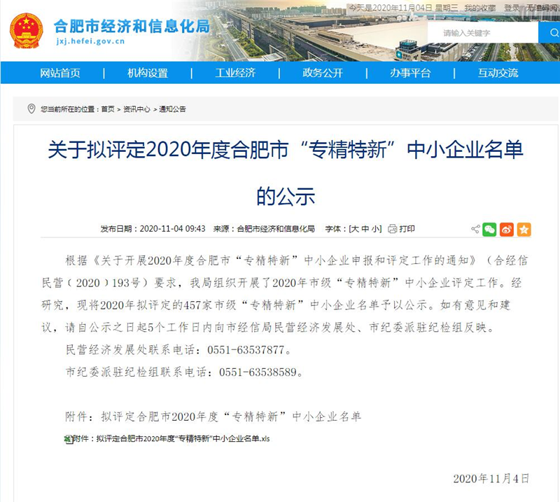 2020年11月4日,合肥市經(jīng)濟和信息化局公示了2020年度“專精特新”中小企業(yè)名單,超遠信息位列其中,又添殊榮!