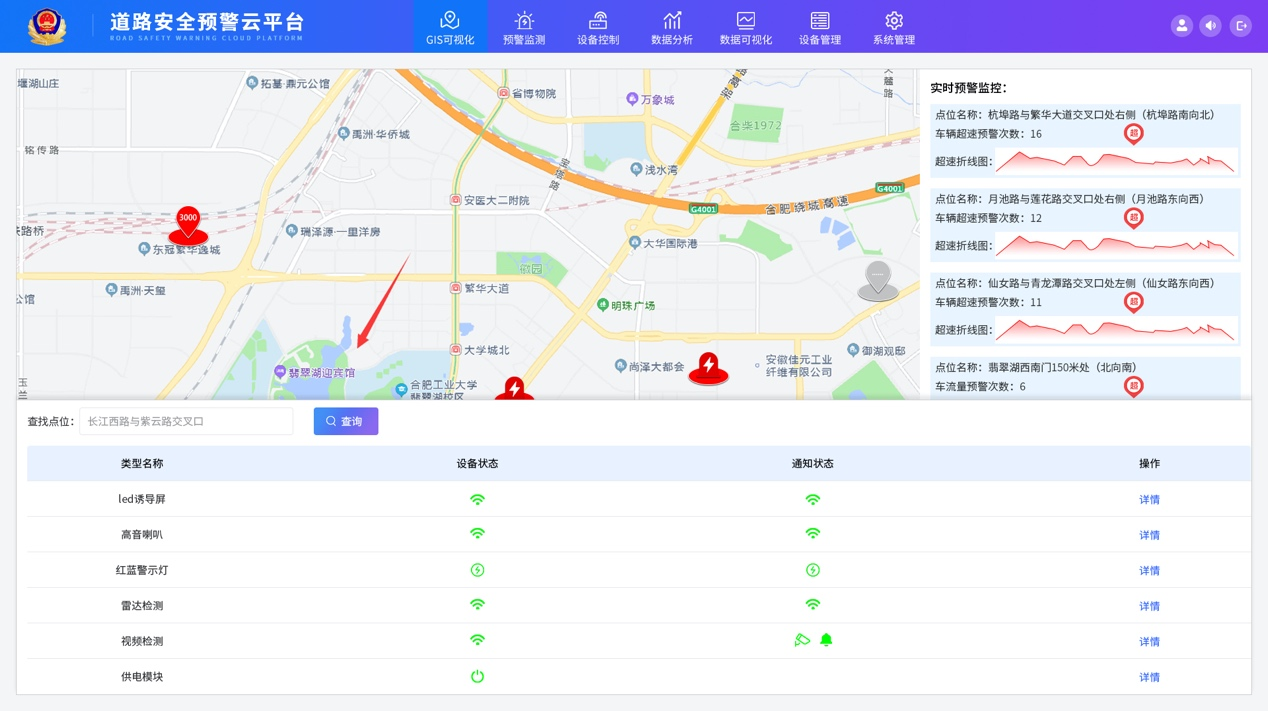 GIS地圖:GIS地圖管控部署點(diǎn)位、檢測(cè)預(yù)警