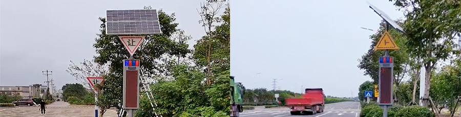 外環(huán)北路與張圩路交口,屬于T型交口類型,采用我司太陽(yáng)能LED屏版本的道路安全預(yù)警系統(tǒng),當(dāng)支路行人、車輛通過(guò)檢測(cè)區(qū)域時(shí),預(yù)警系統(tǒng)及時(shí)提醒主路的行駛車輛,減速通過(guò)該路口。